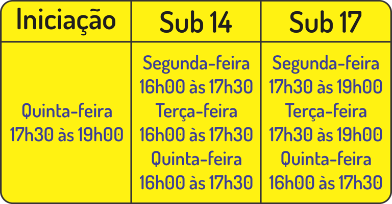 Atividades estruturadas para atletas de 7 a 17 anos, focando no aprendizado e desenvolvimento.